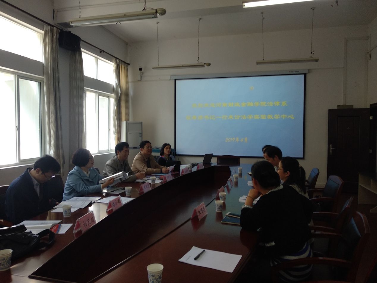 2019年4月18日,河南财政金融学院法律系书记程希彦、公共法律关系教研室主任关迎霞、李振东教授、古小刚副教授、赵小玉老师、相天起老师一行来访法学实验中心,与我中心方玉珍老师、孙艺老师,法学院经济法系李岩老师,武汉市中南北辰信息科技有限责任公司陆巧莲女士进行了座谈。