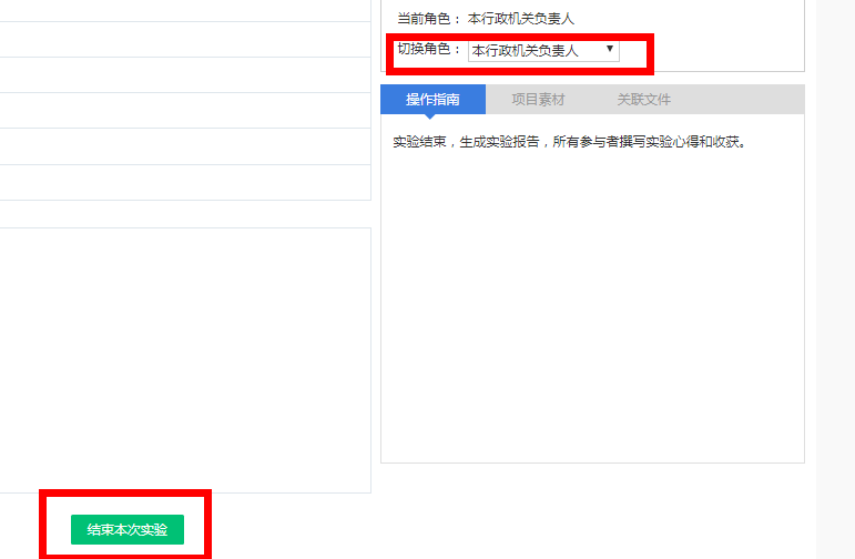 A3:确认每一位同学提交实验心得以后,由【本环节具有结束权限的角色】在右边栏操作界面中进行操作。
