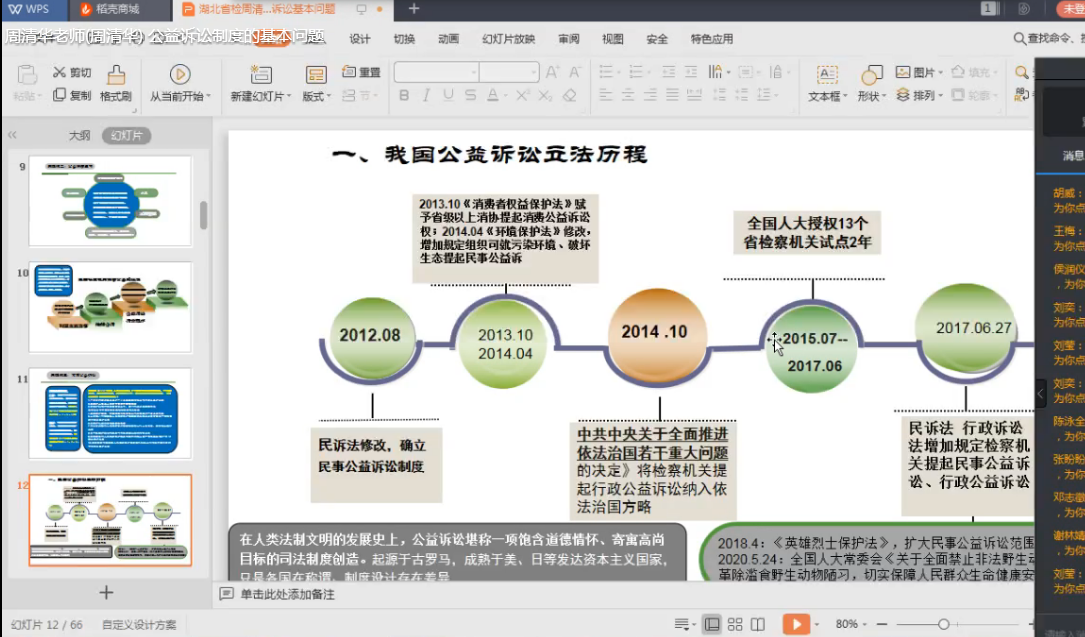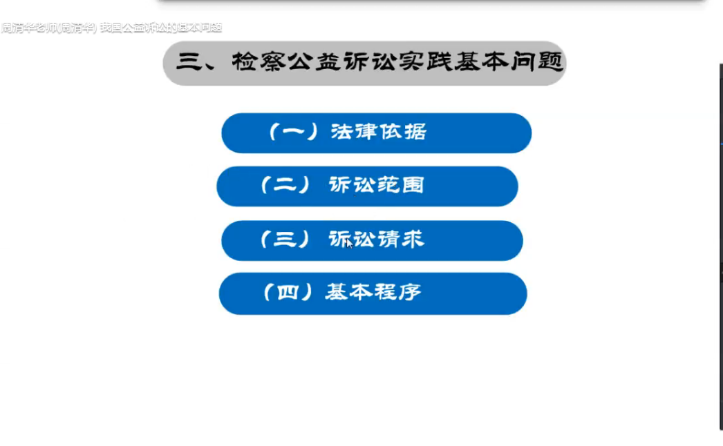 在本专题的最后一部分“困惑与出路”中,周清华检察官讲授了公益诉讼的制度设计和实务问题两方面的内容。她特别强调,由于同学们大多数还没有从事实务的经验,故而,第四部分是大家学习研究的重点。