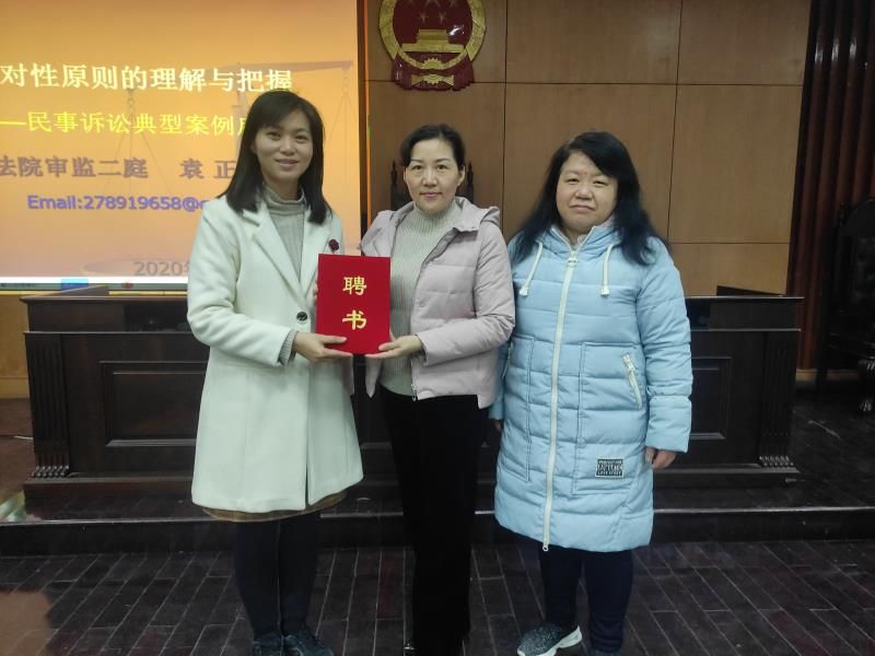 在本次讲座开始的第一阶段,易育书记向同学们介绍了袁正英法官的任职经历。她告诉同学们,袁法官是湖北省法院系统首届审判业务专家,同时也是我们法律硕士教育中心的校外导师,刚刚当选为2020年全国法院审判监督工作先进个人。易书记代表法律硕士教育中心正式向袁正英法官颁发了法律硕士教育中心校外导师的聘书。