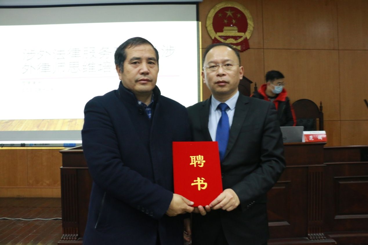 (通讯员:陈竹)2020年12月22日晚7时,由我校法律硕士教育中心主办、法学实验教学中心协办的法律实务大讲堂再一次在文泰楼模拟法庭(二)准时开启。此次讲座的题为:“涉外法律服务实务——涉外法律服务现状及涉外律师思维培养”。法硕中心与法学实验教学中心专门邀请了湖北省涉外法律服务的领军人物范倜律师担任主讲人。讲座由法学院党委副书记兼法律硕士教育中心学生党总支书记易育老师主持。法律硕士教育中心主任简基松老师、法学实验教学中心秘书长邓晓静老师作为嘉宾现场出席。