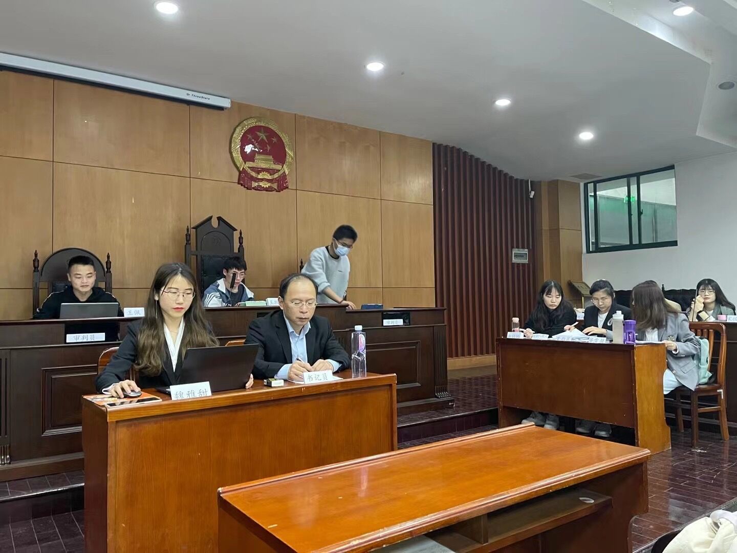 范倜律师延续了他一贯坚持的法律实验教学模式。这次课,全程采取模拟法庭的方式进行。同学们分成两组,按照角色分工围绕“白酒买卖案”与“股权转让款纠纷”两案模拟庭审经过。范倜律师自己也充当法庭书记员参与其中。模拟庭审时,原被告双方代理人围绕案件争议焦点展开了充分的辩论,审判员针对案件事实并结合原被告双方代理人的辩论观点发表自己的裁判理由和结果。