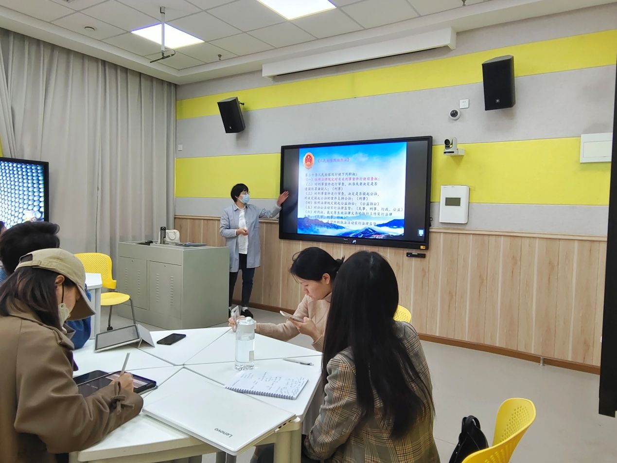 首次教学,刘惠检察官做了精心的准备,她以介绍检察官的职业技能与素养为主题,结合自身的工作经验,深入浅出地为同学们讲授了“检察机关的职能”、“新时代检察官的责任与担当”、“给同学们的实习建议”等三个方面的内容,打开了同学们对检察官职业的新认知。刘惠检察官告诉同学们,新时代的检察官要把握安全大势、发展大势、民生大势,在统筹发展和安全中依法能动履职。