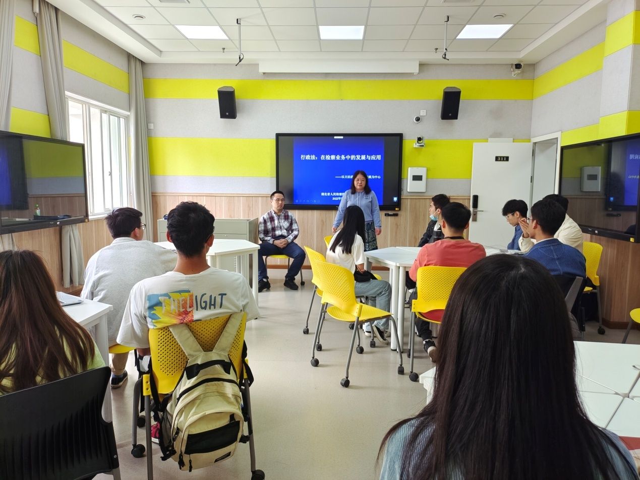 (通讯员 刘妮)2022年5月20日下午,我校法律硕士2021级诉讼与司法实务方向的专业课程《检察实务研习》继续在法学实验教学中心311实验室进行授课。该课程一直坚持校内校外双师讲授的实验教学模式。本次教学,该课程负责人法学实验教学中心秘书长邓晓静老师特别邀请了湖北省人民检察院第七检察部的副主任李一川检察官专题讲授行政检察监督。