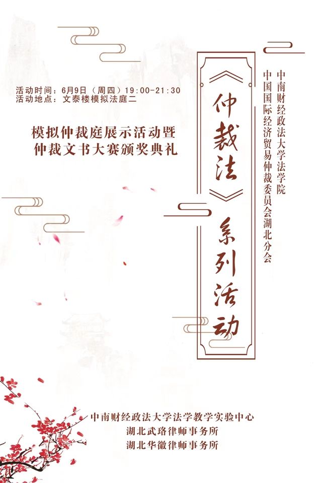 活动预告——《仲裁法》系列活动之 “模拟仲裁庭展示活动暨仲裁文书大赛颁奖典礼”