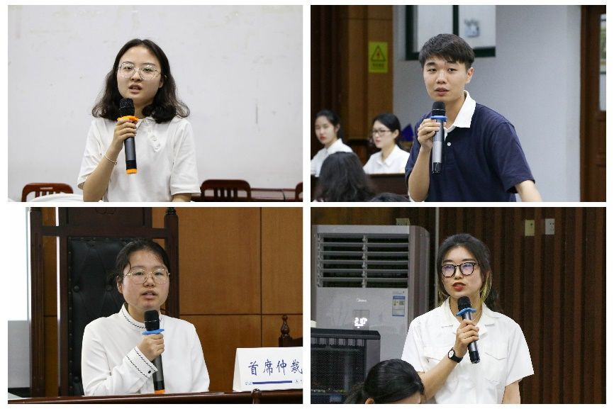 在第二阶段,八名参赛代表通过模拟仲裁庭展示实验成果。模拟仲裁庭运用组委会提供的真实房屋拍卖纠纷案例,在不到一小时的时间内,最大程度完整地展示仲裁庭程序。各位代表大方流畅地完成了对解除权、违约金等案件焦点的分析对抗与审理,逻辑缜密、思路清晰,尽展法科学子风采。