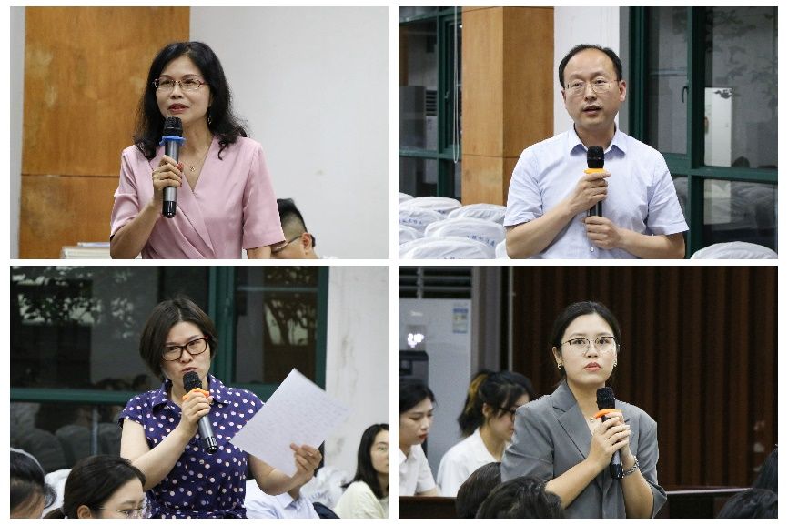 研讨环节,参赛同学回顾了小组在分析案例时的思路与问题,对于焦点归纳中产生的争议提出了自己的想法与疑惑。对于本案民法典时间效力、无权处分等提出问题向到场专家请教,嘉宾们一一予以解答。