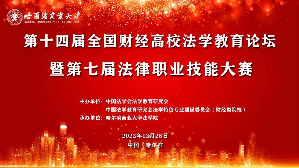 (通讯员马齐琳李清源)2022年12月28日,第十四届全国财经高校法学教育论坛暨第七届法律职业技能大赛在哈尔滨举行。此次论坛由中国法学会法学教育研究会、中国法学教育研究会法学特色专业建设委员会(财经类院校)主办,哈尔滨商业大学法学院承办。会议期间,来自全国40余所财经高校法学专业的专家学者共5000余人次以线上方式共聚一堂,就贯彻落实习近平新时代中国特色社会主义思想育人观与法治人才培养等议题展开了热烈地研讨。我校相关专业的师生在副校长刘仁山、法学院院长陈柏峰、法学院副院长李俊的带领下以线上形式参与了本次大会。
