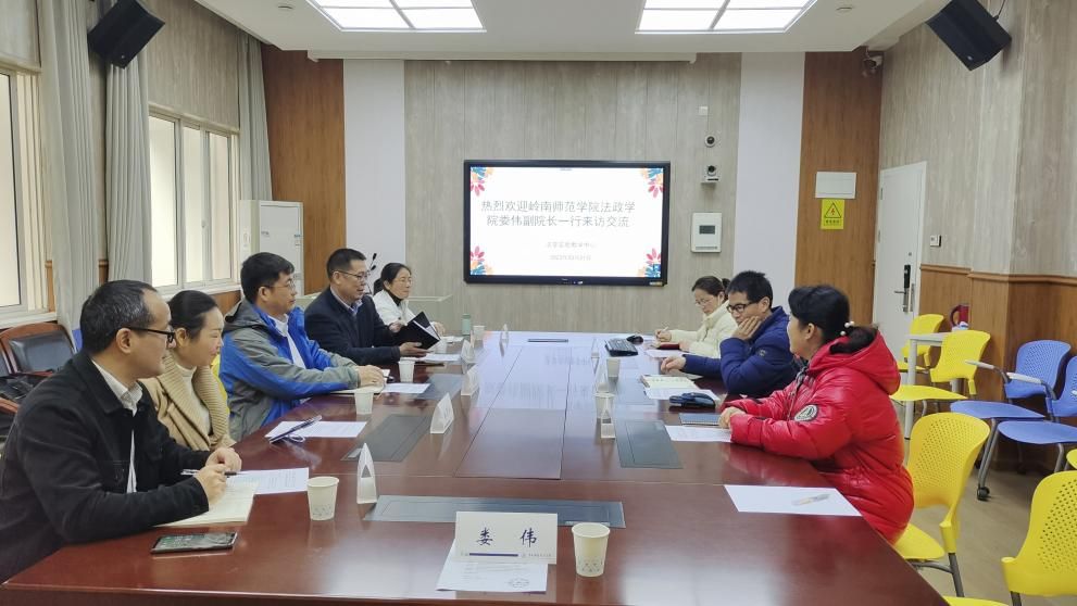 (通讯员:周文杰)2023年3月21日,岭南师范学院法政学院法律系主任韦志明教授,法学系副主任孟庆吉博士,基础法学教研室主任郑文姣、案例教学法教研室主任林碧冰,耿志强博士一行访问法学实验教学中心。中心执行负责人疏义红老师、方玉珍老师,中南北辰信息科技有限公司陆巧莲女士参加此次活动。疏义红老师热情欢迎韦志明主任一行来访,并带领进行实地参观。随后双方就虚拟仿真教学实验室建设与实验教学课程建设等主题进行研讨。