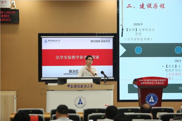 法学实验教学中心执行负责人疏义红老师以“法学实验教学新体系探索”为题,在会上从建设历程、建设成效和未来规划介绍了我校法学实验教学中心在与运行建设和管理创新方面的具体措施。