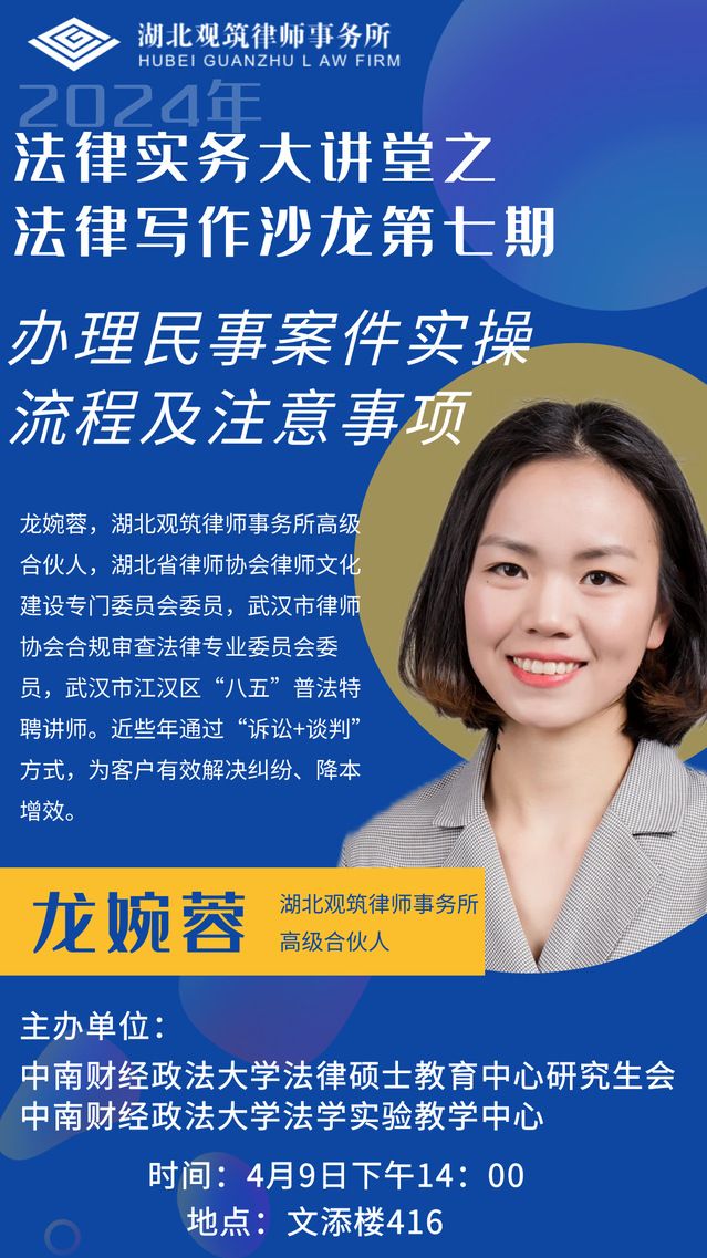 (4月9日)法律实务大讲堂之法律写作沙龙第七期——办理民事案件实操流程及注意事项