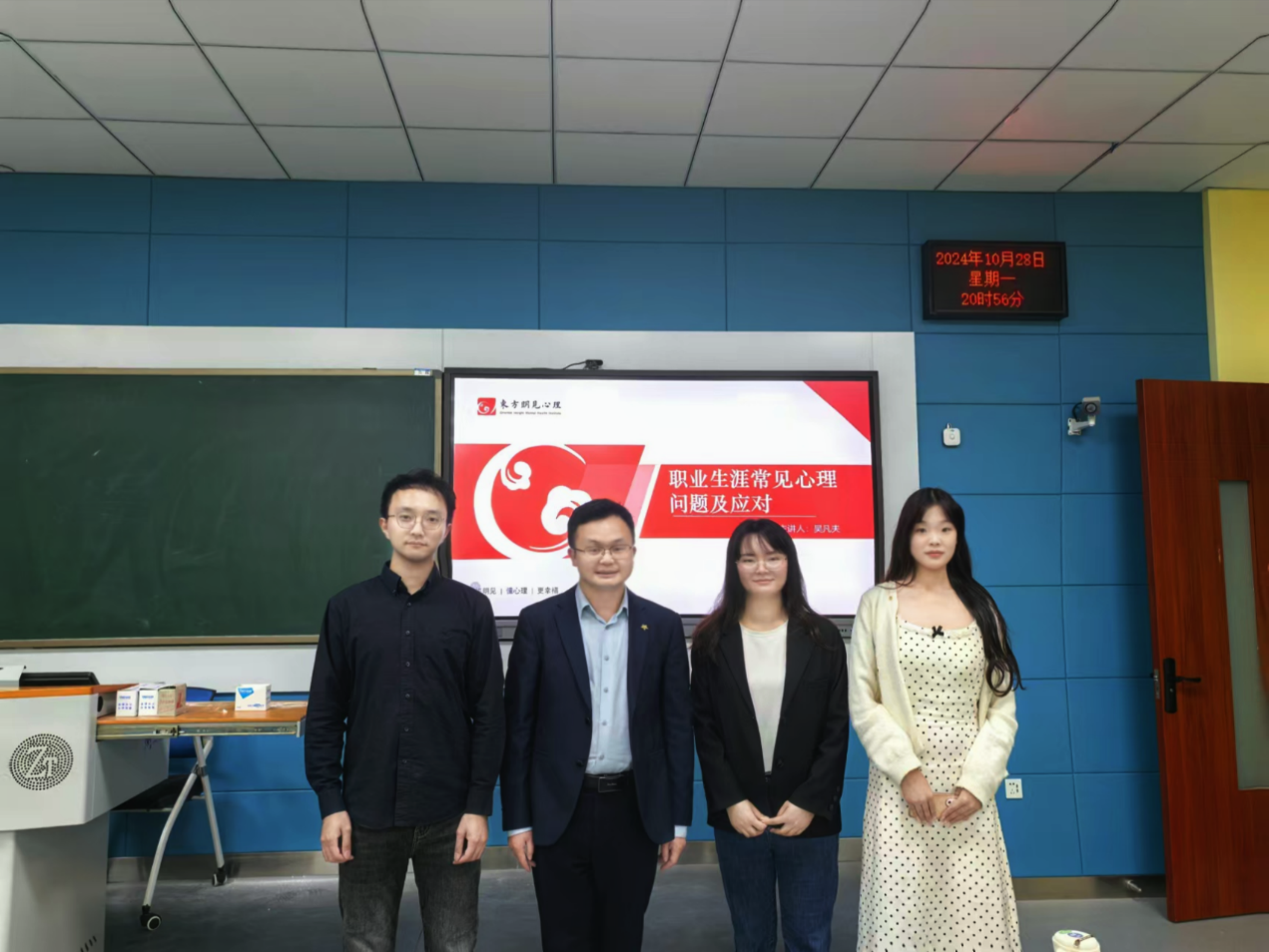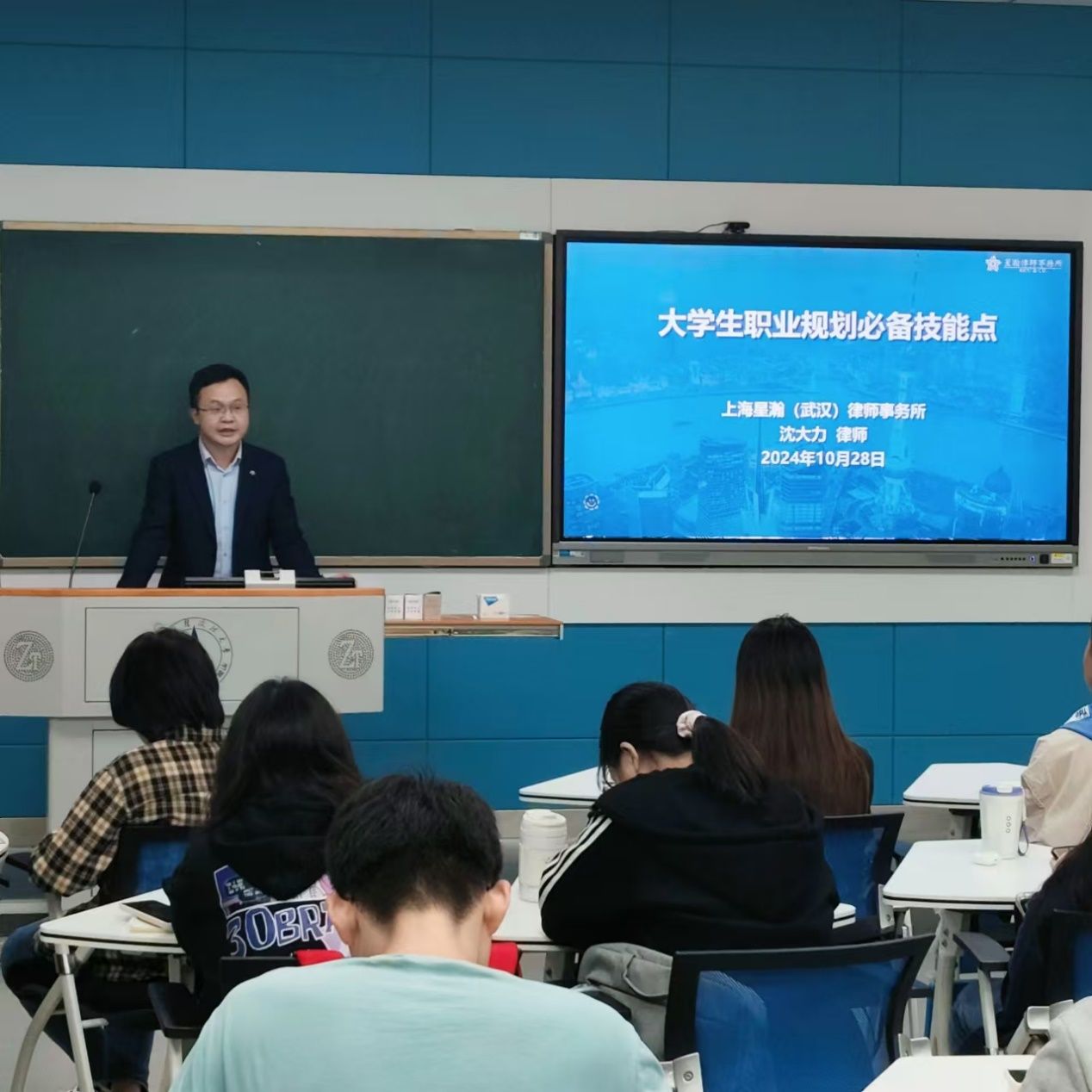 (通讯员 黄晓婷)2024年10月28日晚,应我校法学实验教学中心秘书长、通识课程《制胜之道:就业指导与职业发展规划》主讲教师邓晓静副教授的邀请,米兰电竞·(中国区)武汉校友会执行秘书长、法律分会执行会长、上海星瀚(武汉)律师事务所主任沈大力律师携手湖北东方明见心理健康研究所专职心理咨询师、北京师范大学临床与咨询心理硕士吴凡夫、樊燕飞咨询师在文波楼智慧教室共同为本科生们进行了一次别开生面的实验教学。本次授课聚焦大学生们职业规划中的心理危机应对及大学生职业发展规划两大核心议题,充分实现了实务操作和理论知识的深度融合与交叉,生动展现了职业生涯规划中的诸多关键问题,并为该课堂的学生提供了颇具代表性的职业规划范例。