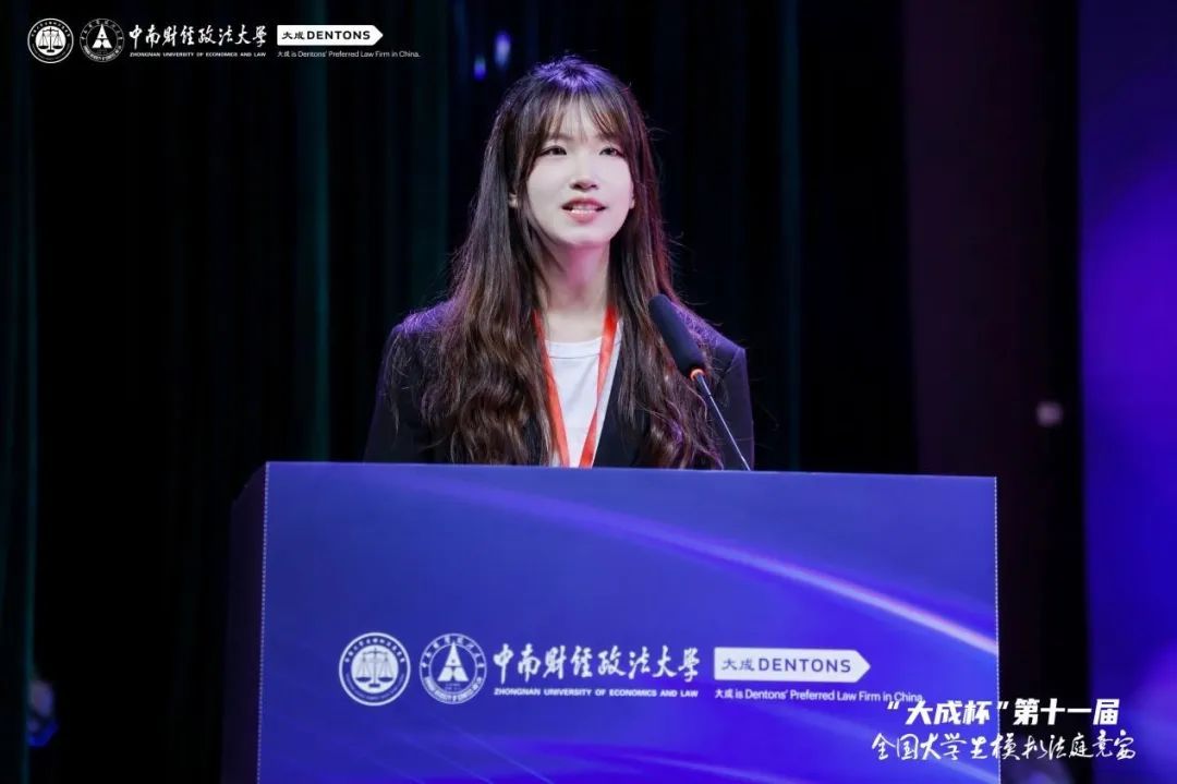 西南政法大学闫美昱同学表示新时代法科生肩负着完善“以实践为导向的培养机制”的使命,将以本届竞赛为起点,继续以青春之我投身法治中国建设的壮阔征程——让法理之光穿透迷雾,让正义之声回荡山河。
