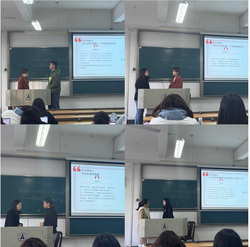 为持续深化法学教育教学改革、创新实务教学模式、提升学生的法律实践能力,2025年11月25日下午,在我校2025级法律硕士的《法律谈判》课堂上,任课教师、法学实验教学中心秘书长邓晓静副教授,专程邀请湖北维力律师事务所林晓璐律师团队以刑辩实务为专题进行实务教学。