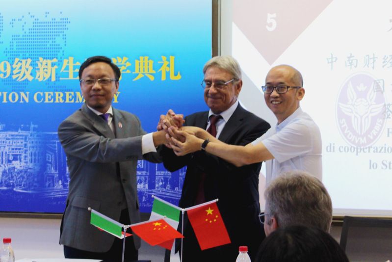 (通讯员:杨庆玲 吴桐 肖萌)9月4日下午,我校中意学院2019级新生开学典礼在文澴楼628成功举办。本次典礼由我校副校长姚莉教授担任主持人,出席本次典礼的嘉宾有我校校长杨灿明教授,罗马第一大学法学院教授、中意学院意方院长OLiviero Diliberto教授,全国律协副会长、国浩律师事务所集团首席执行合伙人吕红兵先生,国浩律师事务所长沙分所负责人罗峥律师,以及来自我校国际教育学院、国际交流部、研究生院、校园建设部、法学院等部门的负责人。中意学院2019级全体新生到场聆听。