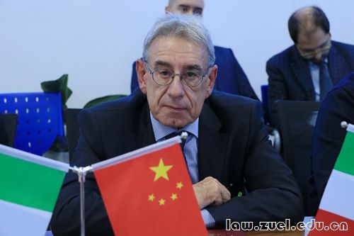 续聘仪式在我校文澴楼中意学院会议室举行。法学院院长、中意学院中方院长徐涤宇教授向远道而来的诸位贵宾表示了诚挚谢意,并对迪利贝托教授续聘“文澜学者”讲座教授表示祝贺。在对双方与会领导和嘉宾一一介绍后,徐涤宇教授宣布续聘仪式正式开始。
