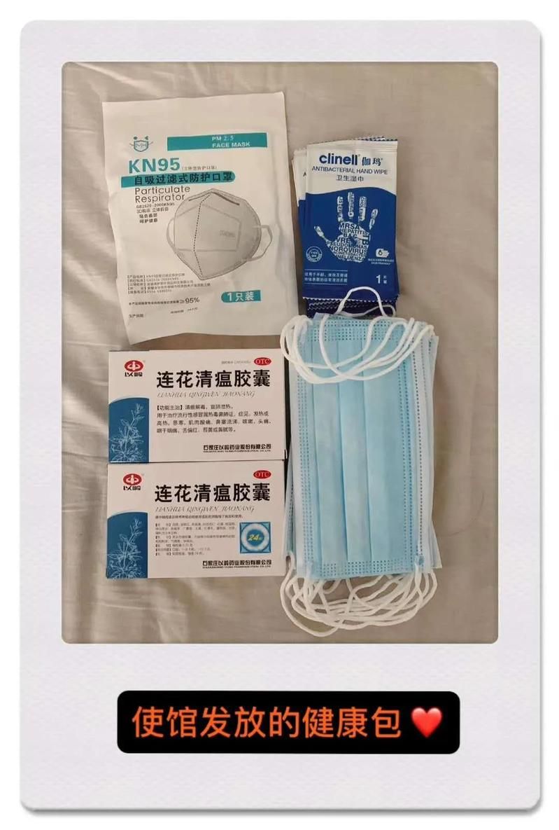 收到健康包后,刘振贝和其他中国留学生都感到特别开心和自豪。“收到来自祖国相隔万里的关怀,大家都很高兴,同时觉得祖国强大了,也很感动。”刘振贝说。