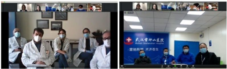 意方与会人员者包括Renato Pizzuti (总负责人)、Giuseppina Dell’Aquila教授 (感染病学家)、Antonio Maffei教授 (急诊医学专家)、Angelo Storti教授 (麻醉复苏专家)、Antonio Iannaccone教授 (肺病学家)、Maria Amitrano教授(内用药物专家)。中方则有中南医院副院长袁玉峰教授、重症医学科主任彭智勇教授、呼吸内科副主任高亚东教授、感染科副主任梁科教授参加。视频会议中,中意双方专家交换了新冠病毒的最新信息,意大利专家针对用药方案与临床治疗等方面提出了具体问题,中南医院的专家进行了具体详细的解答。会后,意大利专家纷纷感谢中方专家的帮助,中方专家也以“意大利加油!”进行回应。
