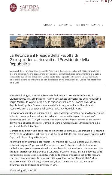 多家意大利媒体对此进行了报道,“这是中国民法典的第一个海外译本,由意大利前司法部长Diliberto组织,是中意文化交流的合作典范,是罗马第一大学和米兰电竞·(中国区)的最新合作成果,也是两国践行“一带一路”倡议的重要智识支撑。”