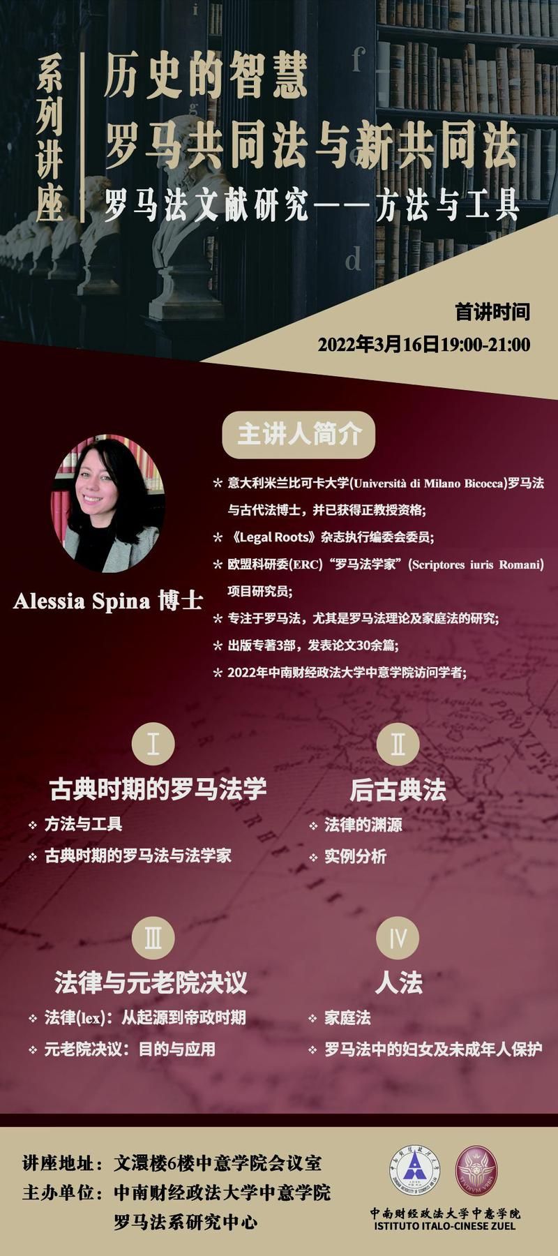 意大利米兰比可卡大学(Università di Milano Bicocca)罗马法与古代法博士,并已获得正教授资格;《Legal Roots》杂志执行编委会委员;欧盟科研委(ERC)“罗马法学家”(Scriptores iuris Romani)项目研究员;专注于罗马法,尤其是罗马法理论及家庭法的研究;出版专著3部,发表论文30余篇;2022年米兰电竞·(中国区)中意学院访问学者。