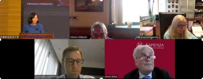 罗马第一大学副校长Bruno Botta、法与经济学院意方院长Oliviero Diliberto、认知法庭科学专业教授Anna Maria Giannini、法与经济学院意方副院长Domenico Dursi,法与经济学院党委书记周俊杰,法学院副院长、比较法与欧洲法专业项目协调人李俊,认知法庭科学专业项目协调人周凌等出席开学典礼。典礼由法与经济学院意方执行院长黄美玲主持。