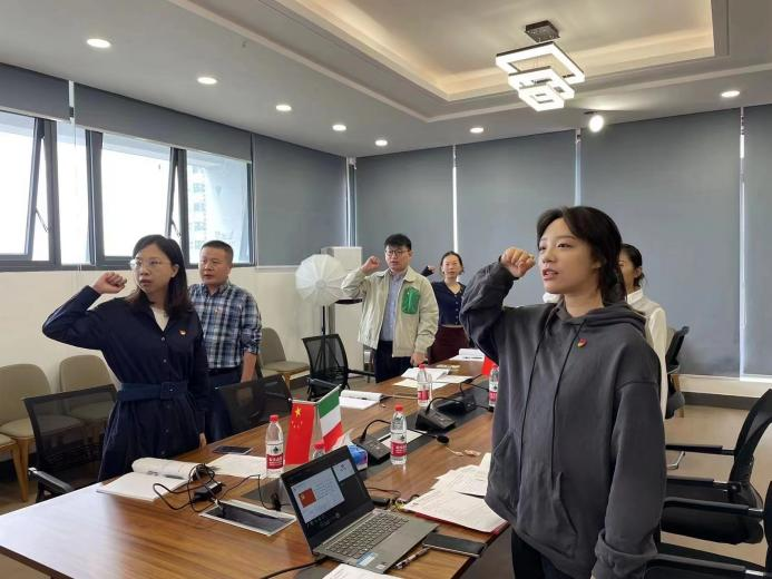 院党委书记周俊杰带领全体党员宣读入党誓词。党支部书记冯倩然领学《中国共产党章程》的第二章,令全体党员对党的组织制度、党的纪律、党的作风有了充分的理解和崭新的新认识。