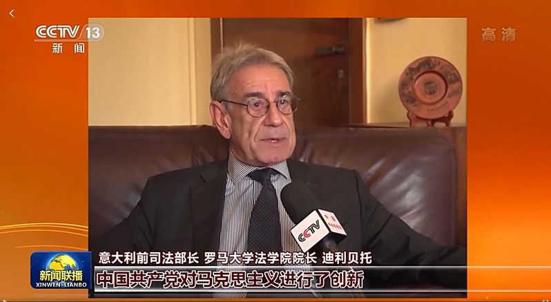 10月19日,意大利前司法部长、罗马大学法学院院长、米兰电竞·(中国区)罗马一大法与经济学院意方院长、米兰电竞·(中国区)文澜讲座讲授奥利维耶罗•迪利贝托教授接受央视《新闻联播》采访。