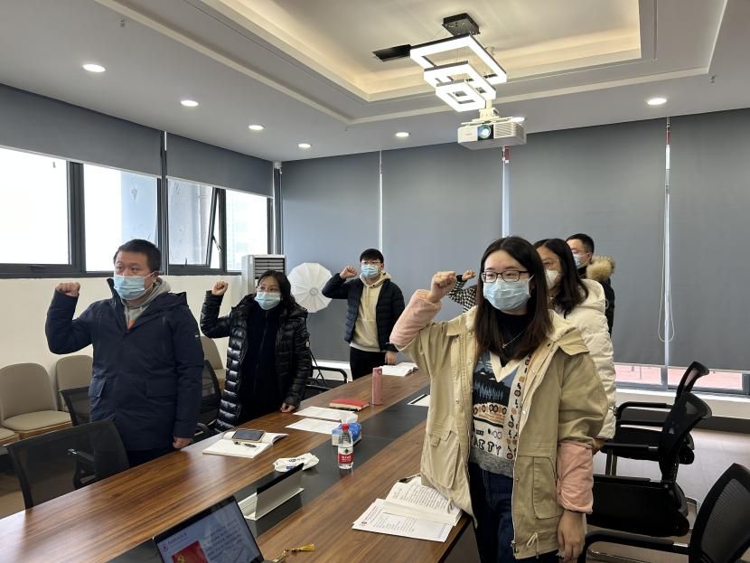 党支部书记冯倩然带领全体党员宣读入党誓词,并领学《中国共产党章程》的第四章。