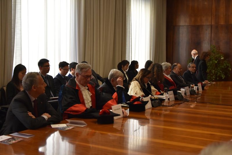 罗马一大为杨灿明举办了隆重且热烈的荣誉博士学位授予仪式,罗马一大校长安东内拉·波利梅尼,副校长布鲁诺·波塔(Bruno Botta),法学院院长奥利维耶罗·迪利贝托(Oliviero Diliberto),法学部主任路易莎·阿维塔比莱(Luisa Avitabile),法学院副院长弗朗克·瓦洛基亚(Franco Vallocchia)等学术委员会委员参加授予仪式,中南大代表团其他成员一同出席活动。