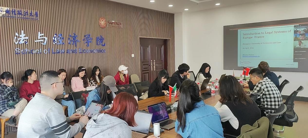 04月26日晚,法与经济学院“菁英漫谈”系列主题讲座第一期在文澴楼623会议室开讲。本次讲座以“欧洲法律制度”为主题,共邀比利时安特卫普大学欧盟和国际经济法研究生教学和研究助理Pierfrancesco Mattiolo博士,西班牙庞培法布拉大学博士生Sébastien Fassiaux,以及德国波恩大学博士生Philipp Schmidt主讲。法与经济学院讲师Gianmatteo Sabatino博士主持,线上线下约30位学子参与本次讲座。
