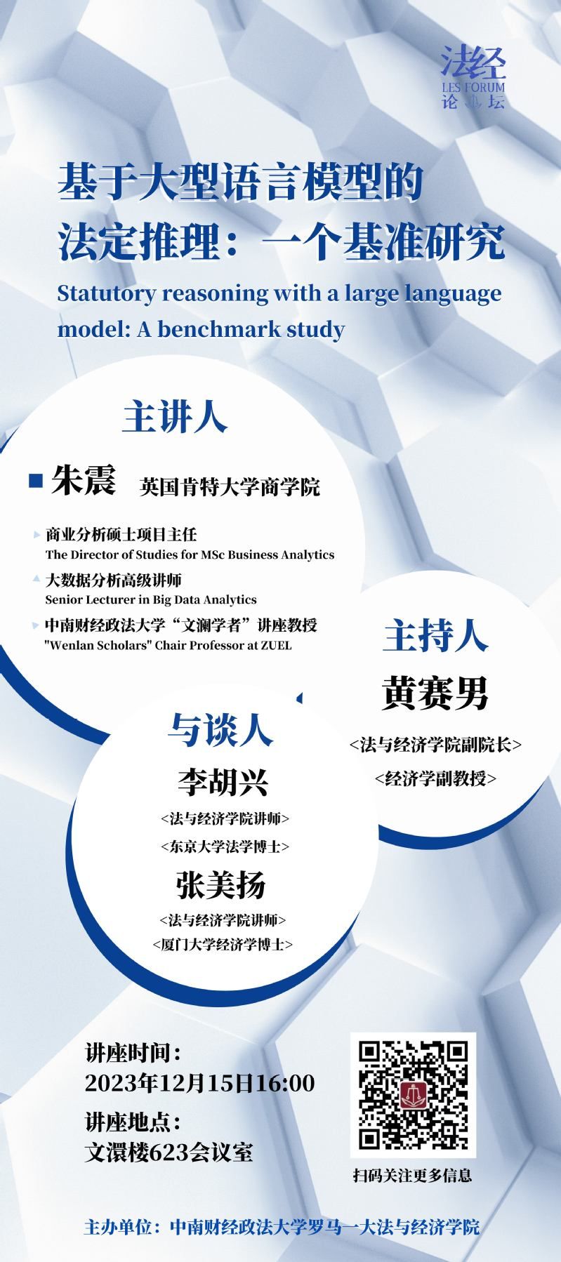 法经论坛第三十三期:基于大型语言模型的法定推理:一个基准研究