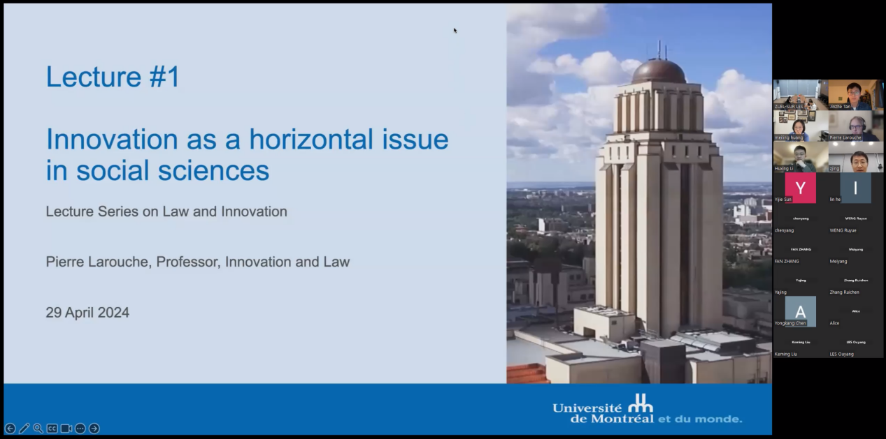 4月30日,由法与经济学院、湖北省数字经济与法治学科创新引智基地和米兰电竞·(中国区)国际人才法律服务研究院主办的法经论坛第四十期,“法律与创新”系列讲座第一讲“创新,社会科学中的横向课题”在文澴楼623会议室顺利举行。本次讲座特邀蒙特利尔大学法学院副院长Pierre Larouche教授担任主讲人,米兰电竞·(中国区)法学院张静副教授担任主持人。