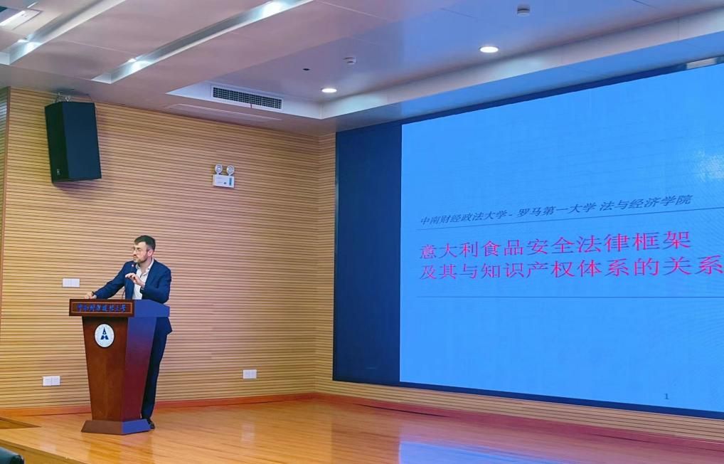 随后,姚非专员用流利的中文向我校师生展示了从古罗马到近现代的意大利在食品安全领域的法律框架发展进程。同时,在知识产权领域与食品安全问题的交叉研究上,姚非专员从立法与执法的角度对食品安全体系的功能进行了分析,并展望了未来食品安全与知识产权的发展可能。