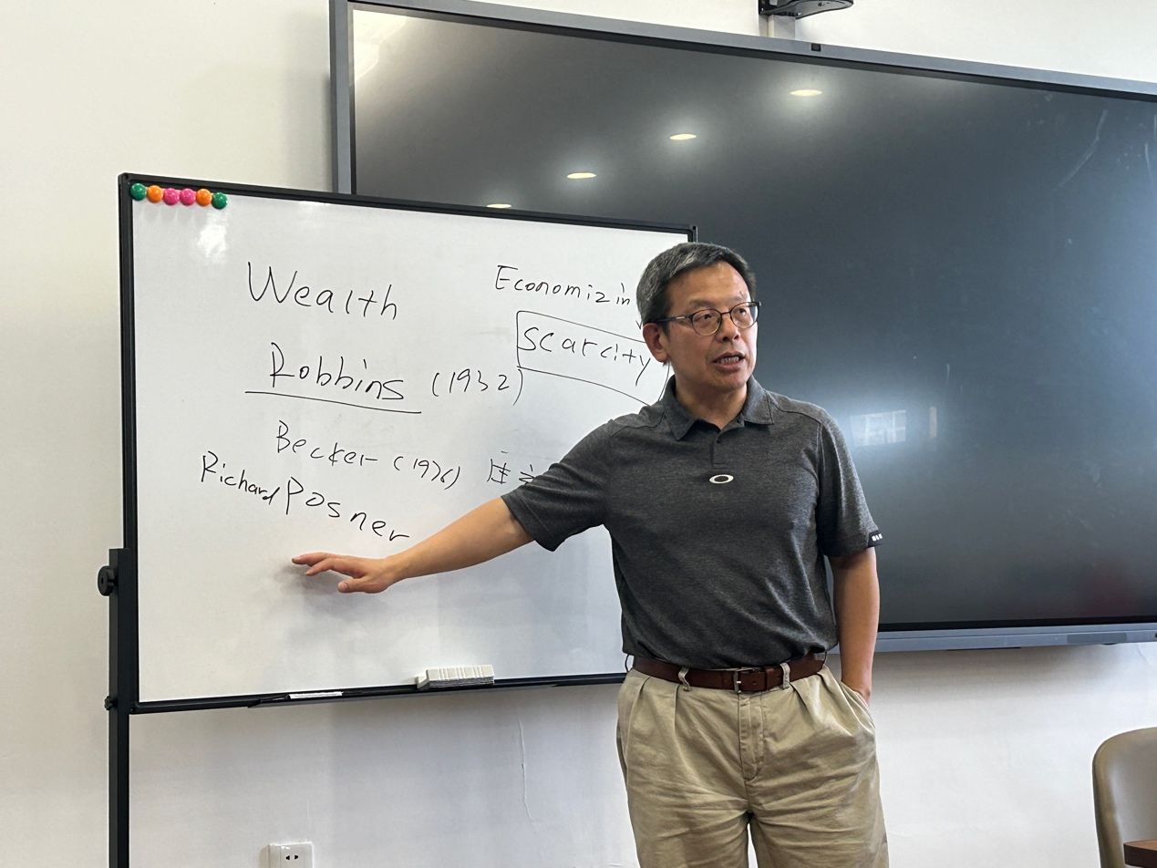 2024年6月14日下午,法与经济学院在文澴楼623会议室成功举办《科斯论法律经济学》新书分享会。本次讲座邀请到《科斯论法律经济学》编者、美国科斯研究院高级研究员王宁教授做主题演讲。法与经济学院讲师李胡兴博士主持,法与经济学院副院长黄赛男副教授、文澜学院李程教授参与品读,三十余名师生踊跃参加,反响热烈。