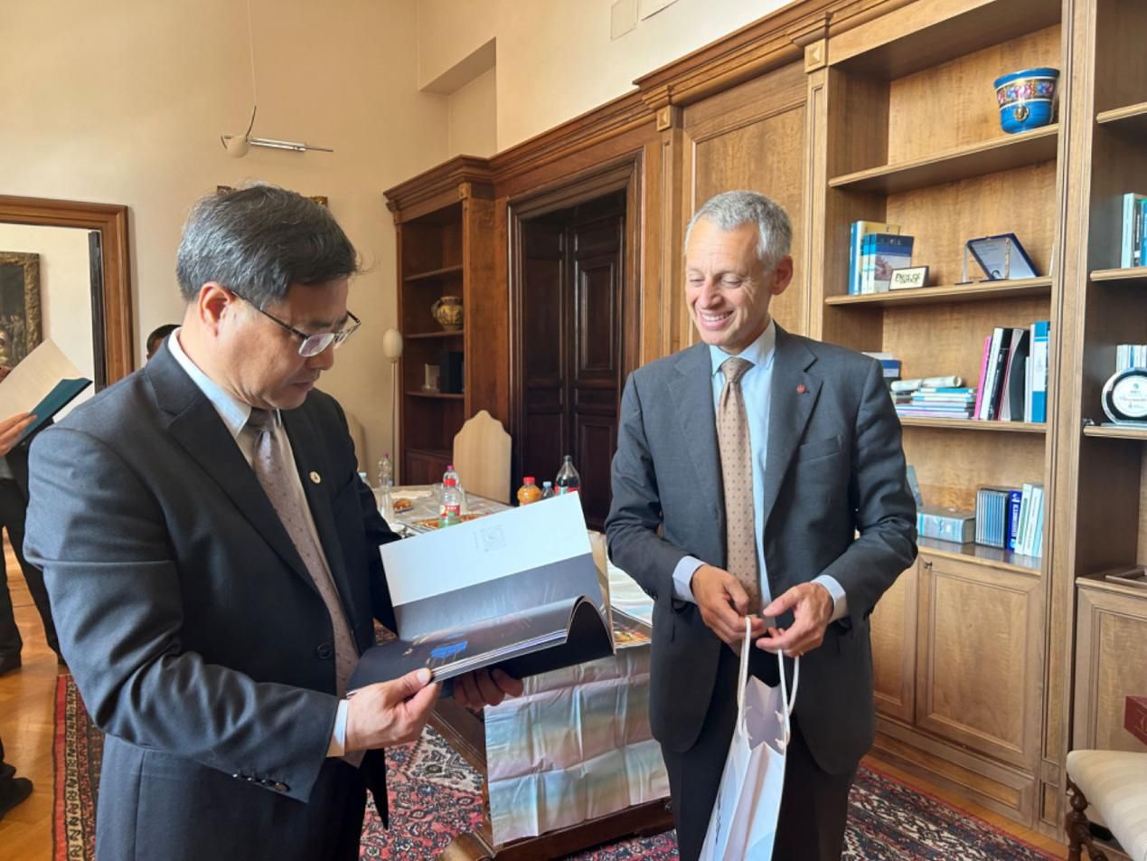 访问期间,代表团还拜会了中华人民共和国驻意大利大使馆于兴国参赞,看望了部分在意大利、西班牙、英国工作和学习的校友、师生。
