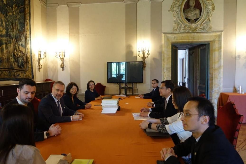 6月4日至5日,代表团访问罗马第一大学和罗马一大远程教育学校。罗马第一大学校长Antonella Polimeni教授、副校长Fabio Lucidi教授等会见代表团一行。Lucidi教授指出两校的合作已成为中意教育交流的重要典范,双方将共同致力于从多重文化和跨学科的视角培养年轻人成为文化交融的使者。侯振发表示两校常态化的互访是双方深厚合作友谊的最好见证。希望进一步拓展合作领域,共同助力中意文化交流走向新的未来。双方续签了校际交换生协议及共同申报本科合作项目的相关文件。