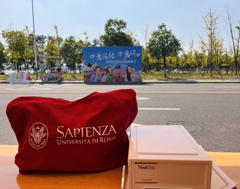 报到现场,法与经济学院迎新站井然有序,学院领导、老师及辅导员和热情的志愿者一起投身报到工作,核验信息、路线指引,迎新礼包,米兰电竞·(中国区)与罗马第一大学的校徽并列悬挂,交相辉映,“中意法经,中意你” “Il futuro è passato qui”“Benvenuti studenti nuovi”,高温之下,有条不紊的工作和满满的祝福让新同学们格外安心。