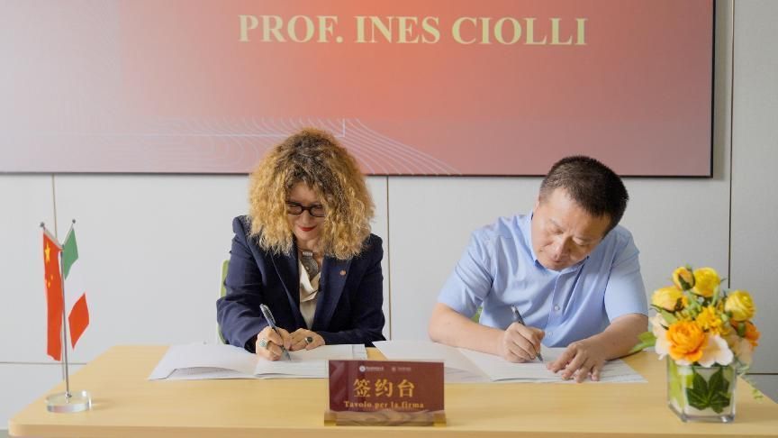 黄赛男副院长详细介绍Ines Ciolli教授的个人履历及学术成就,对其在中意两校合作办学过程中所作出的贡献表示感谢。在参会师生的共同见证下,法与经济学院党委书记周俊杰和Ines Ciolli教授共同签订访问教授协议书。