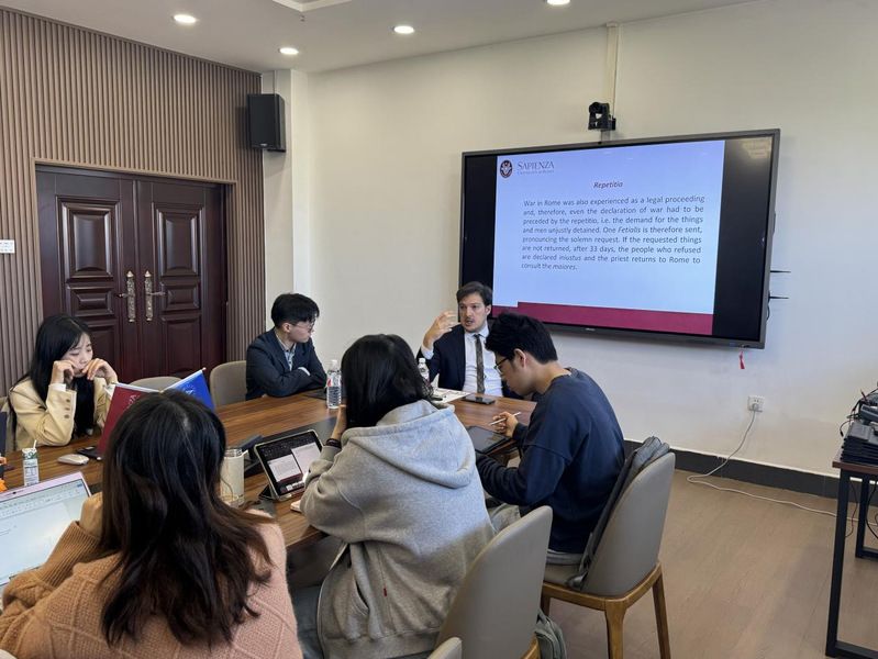 10月24日与25日,法与经济学院携手研究生院联合举办的“实务大讲堂”第八期在文澴楼623会议室顺利举行。本期实务大讲堂有幸邀请到了罗马第一大学的杰出研究员Benedetto Monteleone为我们带来了主题为“The Origins of International Law and International Organizations in Ancient Rome”的系列精彩讲座。讲座分先后两场进行,分别由法与经济学院黄赛男副院长与徐育知老师主持。