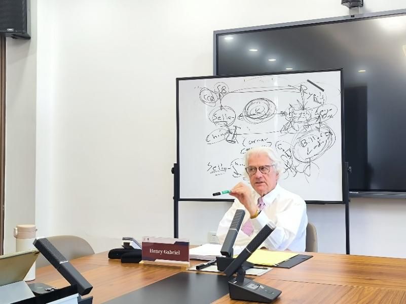Henry Gabriel教授凭借其丰富的学术背景和多年的国际法律实践,为本系列讲座注入了深刻的见解和诙谐的风格。在五场讲座中,Gabriel教授用生动的语言和真实的案例,为学生们讲解了跨国商事法律的复杂性与多样性。他以独到的视角和丰厚的实务经验,不仅为大家解答了课本上未曾提及的细节,更鼓励学生们挑战既有观念、从更广阔的视野理解全球商事法的发展。在欢笑与思辨中,学生们不仅加深了对国际商法的理解,更激发了对未来学术和职业发展的思考。