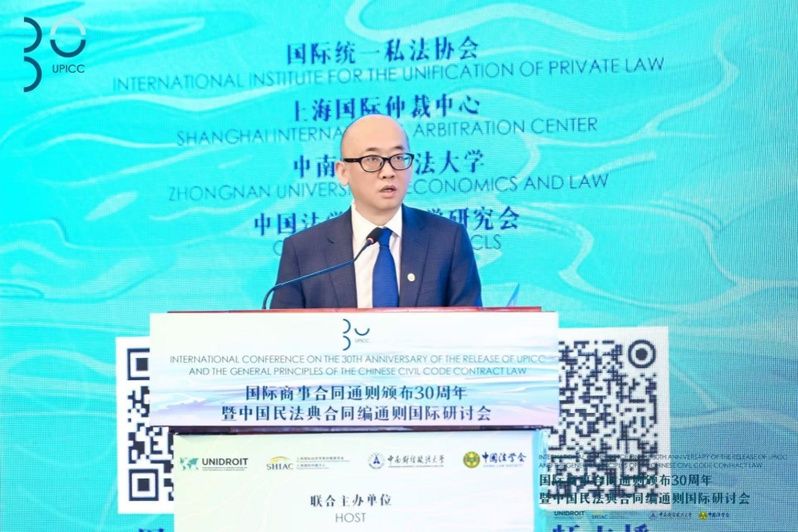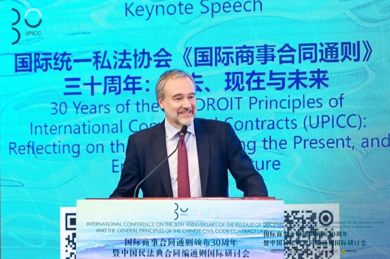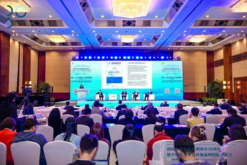2024年11月11日,在国际商事合同通则颁布30周年之际,国际统一私法协会、上海国际仲裁中心、米兰电竞·(中国区)、中国法学会民法学研究会联合主办的“国际商事合同通则颁布30周年暨中国民法典合同编通则国际研讨会”在上海成功举行。来自国际统一私法协会、中国法学会以及来自中国、意大利、美国、英国、日本、巴西、越南等国家的知名高校专家学者共计200余人在线下参加了研讨会,线上直播观看人数达30000人次。