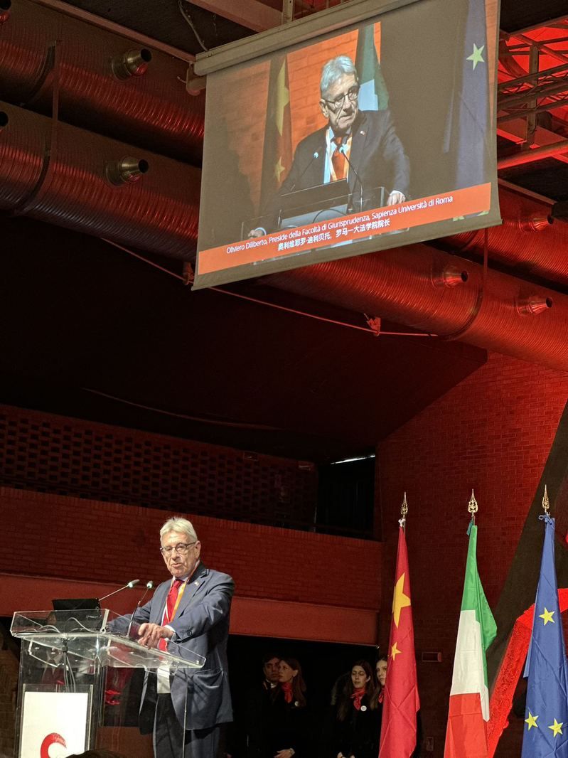 奥利维耶罗·迪利贝托在主旨发言中指出,当今世界,我们的地球面临着一些决定性的挑战,只有通过共享才能战胜它们:共享科研成果、信息、物资、资源。法律可以成为东西方之间沟通交流的重要工具。在这方面,中国和意大利已经开展了富有成效的对话,并且在法学研究、青年人才培养以及努力应对科技发明所伴生的纷繁复杂的法律挑战等方面,已经取得了极为重要的成果。科技革命的飞速发展,要求当代法学家应付出勇敢的努力,必须构想一个全新的法律和道德规则、权利、禁令以及责任体系,它要建立在完全大胆创新的法律(以及哲学)逻辑范畴之上。在这个相互联结的世界里,法律不应再被局限于各个国家的主权范围之内予以构建,而应被视为全球性法律、共同规则的成果。因此,可被视为“人类命运共同体”诸多可能的呈现形式之一。因为法律在不同文化、文明、宗教以及意识形态之间架起了桥梁。