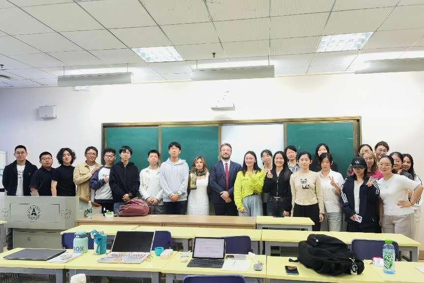 会议重点研讨了比较法与欧洲法、法与经济学专业的教学大纲优化、课堂教学效果评估及考核方式等议题。李俊对Raffaella Messinetti教授专程来汉授课表示感谢,详细阐述了中国学生在理论学习需求等方面的特点。Raffaella Messinetti教授高度评价了学院完善的教学保障,并对中国学生的学术表现及课堂互动质量给予充分肯定。双方就建立校际长效合作机制达成共识,承诺将持续深化教学质量管理合作,共同提升人才培养质量。