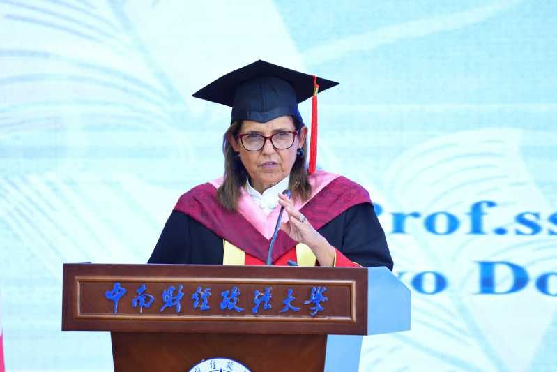 波利梅尼表示,非常荣幸第二次来到中南大参加法与经济学院成立三周年系列活动。她指出,跨学科的合作是学科发展的正确方向,也是交叉融通学科的特点。2024年签署的人工智能领域合作意向书为两校打开了新大门。“人工智能发展需要伦理学等学科支撑,多学科融合是未来的发展方向。”她表示,除法律、经济等传统学科外,期待两校在人工智能、科学、生物医学等前沿领域深化合作。