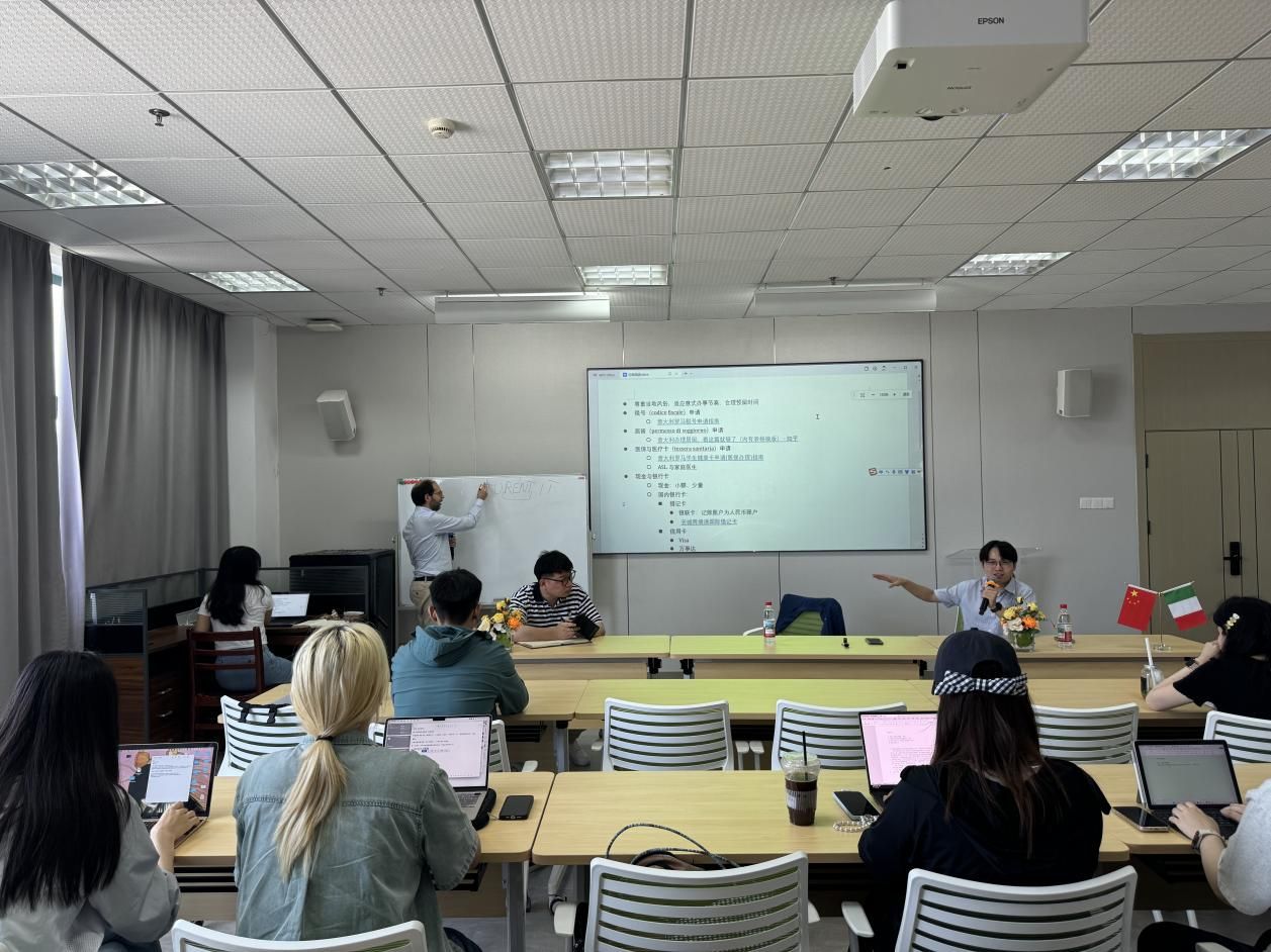 首先,Dursi教授以“留学意大利:国际学生指南”为题,系统解析了意大利高等教育体系及罗马第一大学的教学特色。在课程设置与教学安排方面,他特别提醒国际交换生注意入学时间节点,并详细介绍罗马一大为新生打造的“Welcome Day”国际学生迎新活动——这项每年九月初举行的盛会,将为国际学生提供包括税号注册、医保申请以及居住证办理等在内的一站式服务。讲座中,Dursi教授特别强调学术资源利用的重要性,鼓励中国留学生充分利用罗马一大丰富的图书馆资源,同时主动参与本土学生的学术社交活动,尽快适应在意大利的学习节奏。针对生活起居等实际问题,教授详细介绍了校园周边及罗马市区的住宿选择,并就学生普遍关心的公共交通月票购买、校园餐饮服务等生活细节提供了专业建议。这些实用信息为即将赴意的留学生提供了全方位的行前指导。