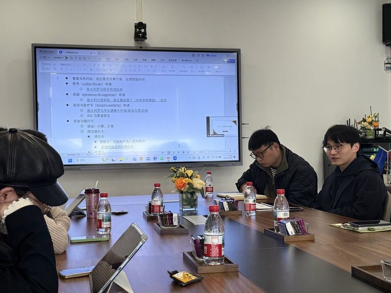 2025年11月26日下午,法与经济学院在文澴楼623会议室顺利举办赴意交流学子思政辅导与行前动员,为17名将于2026春季赴意大利交流的学生筑牢安全防线、夯实学习生活准备基础。本次培训邀请学院讲师徐育知、研究生辅导员张向飞及学生代表江舒婷担任主讲人。