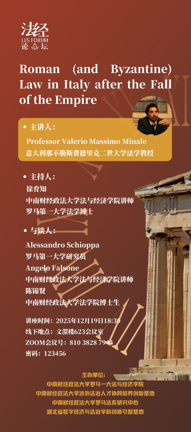 法经论坛第八十期:Roman (and Byzantine) Law in Italy after the Fall of the Empire