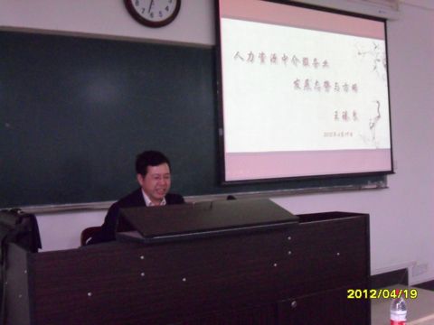 王臻良处长首先介绍了目前湖北省人力资源市场的状况。他指出,目前总的状况就是缺乏相关专业人才,以湖北省为例,目前人力资源行业的从业者有3万多人,但真正学习本专业的却非常少,所以本专业属于朝阳产业,发展前景良好。随后王处长着重从宏观态势出发,就人力资源配置的总体目标,人力资源服务的国内外动态以及湖北省人力资源中介服务业概况四个方面进行了深入浅出的讲解。王处长将湖北省的人力资源中介服务业发展分为萌芽起步阶段、培育发展阶段、规范运行与整合阶段三个时期,并对三个时期的特点进行归纳阐述阐述。他指出,湖北省的人力资源中介业务发展任重道远,今后要借鉴国内外先进经验结合本省实际,大力促进湖北省人力资源中介业务发展。同时,他也提出当代大学生要努力学好本专业知识,打好基础,为自己今后的发展和社会人力资源中介业务发展添砖加瓦。