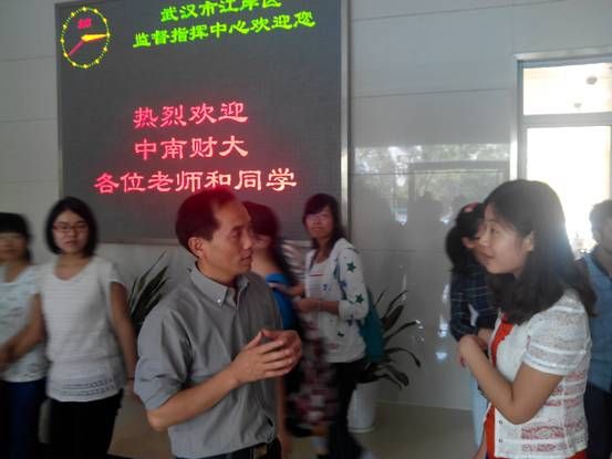 师生一行46人于下午两点左右来到数字化城管监督指挥中心。在中心的会议室里,我们首先观看了一段宣传短片,了解了数字化城管监督指挥中心的工作机制、结构体系、工作成果等。接下来,由一名专业的工作人员为我们讲解了案件的三个来源,包括电话上诉、视频巡查上报、武汉城管通等。接下来又为我们演示了数字化城管处置流程。随后,进行了提问环节,同学们就监督员考核机制、网格系统地划分、案件分类情况等问题向丁主任请教,同时梁老师也就执行力度、各部门之间如何协同工作、系统费用来源等问题与丁主任进行深刻交谈。最后,同学们在丁主任的带领下来到中心的办公室参观,并同工作人员交流实务中可能遇见的情况,有些同学还操作了一下系统,体验了高科技的城市管理模式。