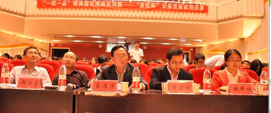 5月7日晚7点,由校团委和公共管理学院主办的“一院一品”精英面试挑战赛系列之“京佳杯”公务员面试挑战赛在艺体中心音乐厅隆重举行。本次活动特邀湖北省人事考试院吴淮萍处长,湖北省高校毕业生就业指导中心黄建利老师,武汉市江夏经济开发区金港新区郑卫星主任,公共管理学院行管系主任庞明礼教授以及京佳教育集团湖北分校魏梓林老师担任评委。公共管理学院院长、MPA中心主任丁士军教授,公共管理学院党委书记罗明晖老师,公共管理学院副院长陈芳教授、李明强教授,公共管理学院党委副书记丁奕老师,校团委副书记李司铎老师等嘉宾出席了本次活动。